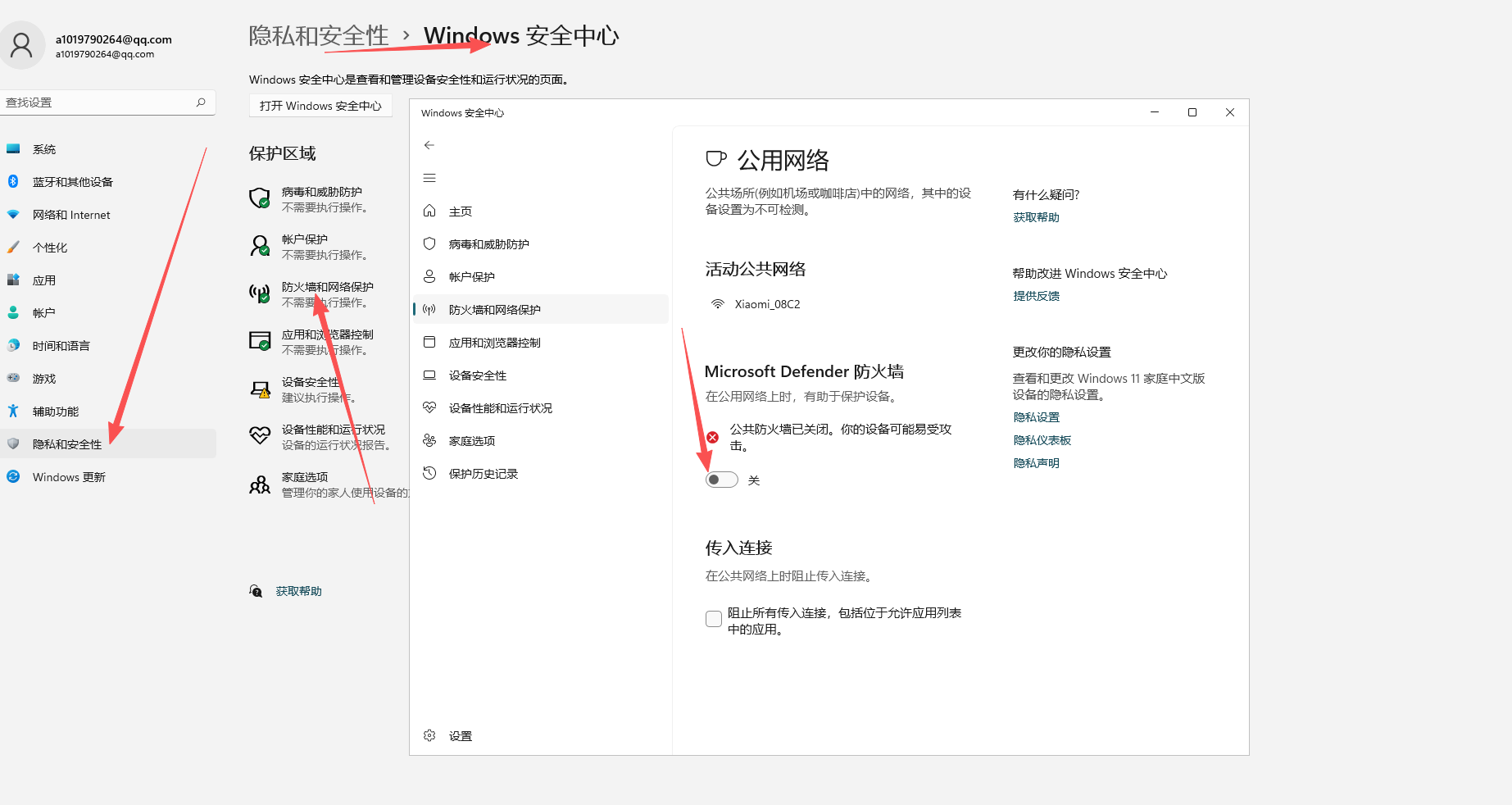 1.使用路由器搭建一个局域网,并保持该电脑ip地址通道畅通。然后点击电脑设置——隐私与安全性——windows安全中心 关闭电脑所有防火墙并