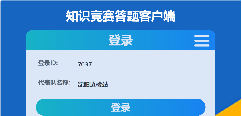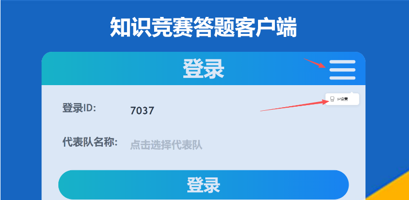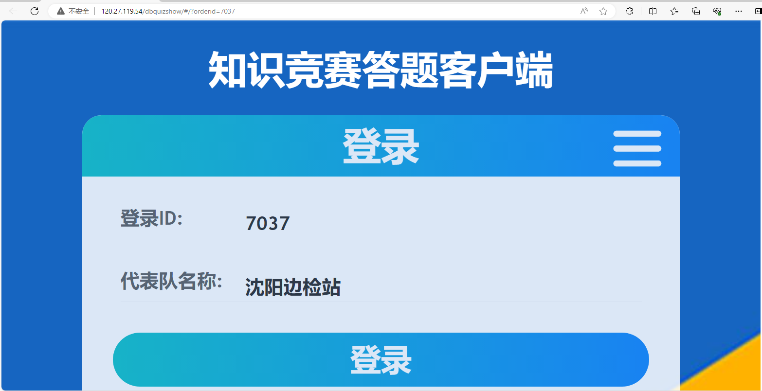 5.然后使用平板自带浏览器扫码(二维码的位置看上图输入ip地址的右边点击二维码就会出现)扫码进入平板答题登录界面 输入ID下面选择代表队登录。最