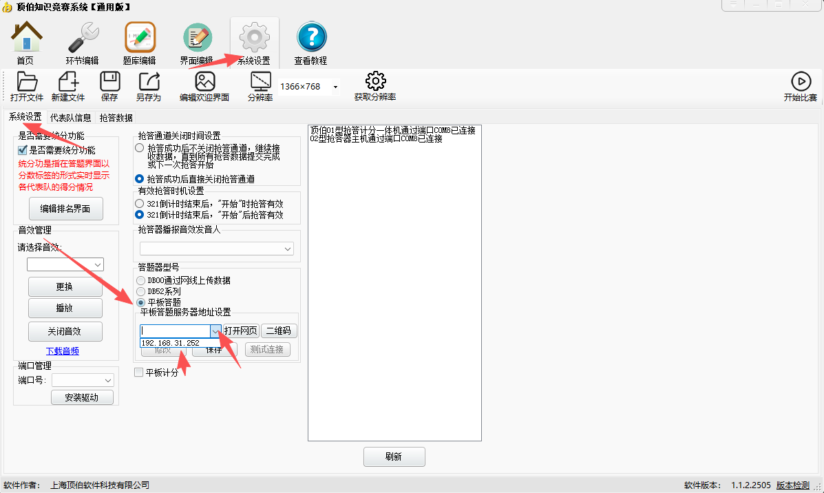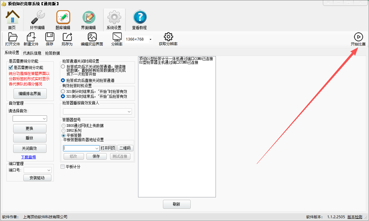 3.然后打开顶伯知识竞赛软件在环节编辑里面勾选是否使用平板或者答题器答题,然后点击系统设置勾选平板答题
